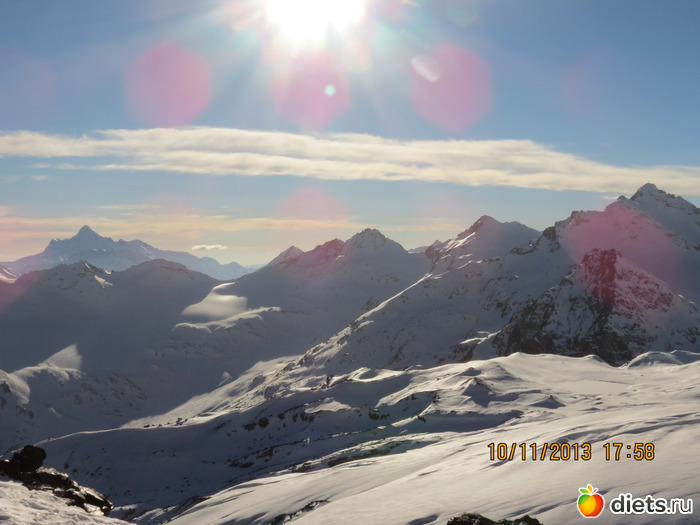 Думаю: "Что же это мне напоминает???" Где-то уже был у меня такой сюр. И вдруг вспомнила- на Эльбрусе! Точно! Точно так же там ярко и жарко светит солнце, но снег не тает. И он там белый-белый!!! Вот такой.