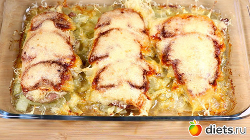 3. В блюдо для запекания выложить лук, распределив его по всему дну.