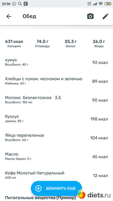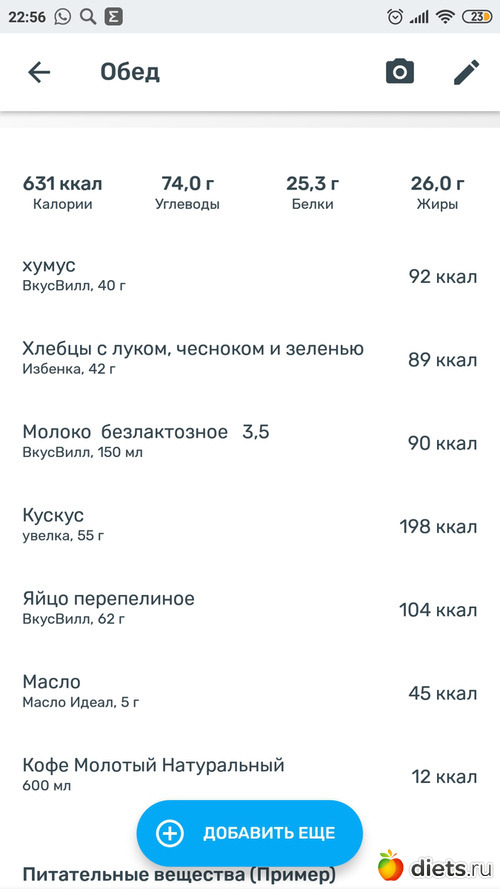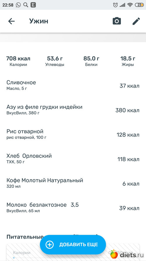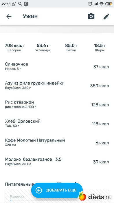 Решила, что пусть это уже будет обед и попробую распределить на 2приема пищи.