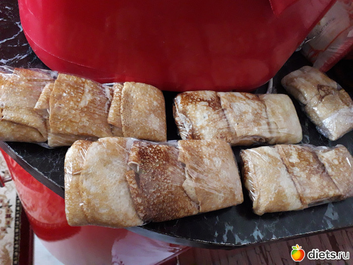 Совсем скоро начнется дачный сезон. Мужу на даче нравится завтракать блинчиками с начинкой. Готовлю -впрок, раскладываю с начинками порционно(знаю, что съедает 3 блинчика), заворачиваю в пищевую пленку и замораживаю! Там-или в микроволновке, или на сковороде остается только разогреть!