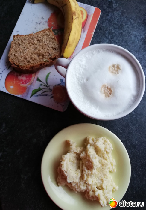 Позавтракала пшённой кашей с бананом и капучино с хлебушком из цз муки (рецепт скоро будет