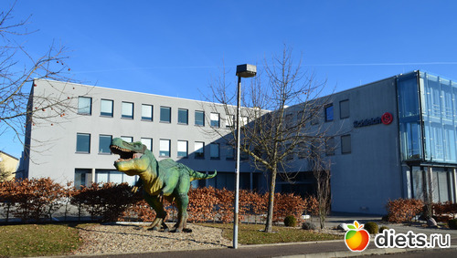 Это главное здание и вот такой динозавр встречает (фото моё, но не от сегодня)