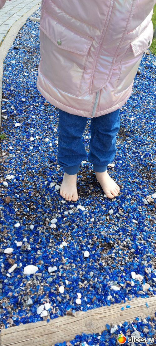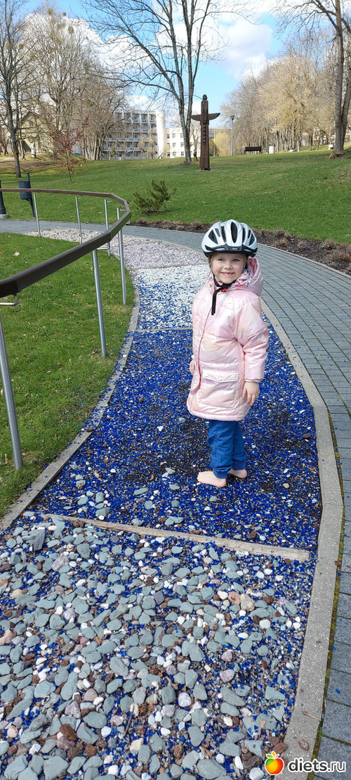 Зашли в парк с миниатюрной "босоногой" и конечно не отказали себе в удовольствии её пройти, хотя как-то странно было оказаться с голыми ногами в апреле