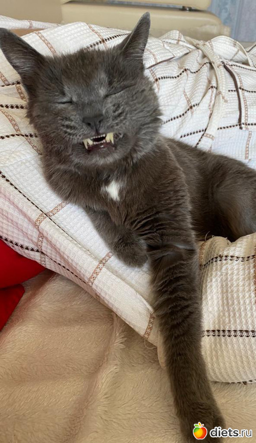 А кот клыкастый, просто хищник настоящий, хоть и улыбается