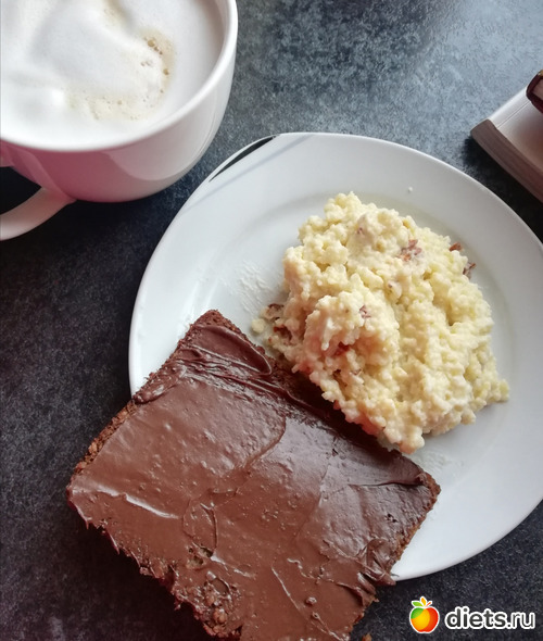 Завтрак : каша пшенная, цз хлеб с арахисовой пастой и капучино.