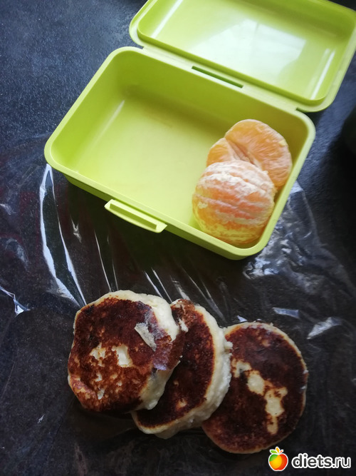 Перекус : сырники, апельсин