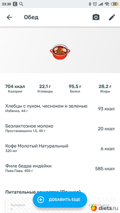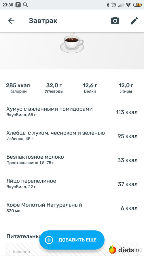 Калорийность продуктов