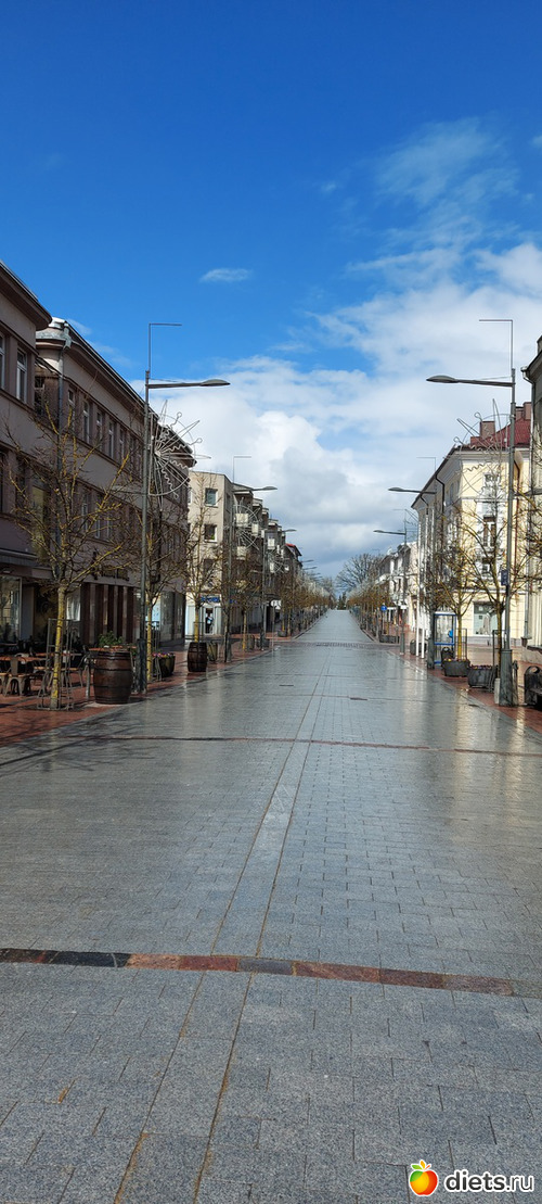 Первое, что нас поразило в Шяуляе - полное отсутствие людей на главной туристическо-пешеходной улице, в выходной день, в полдень