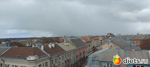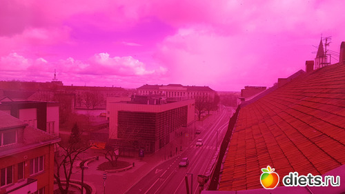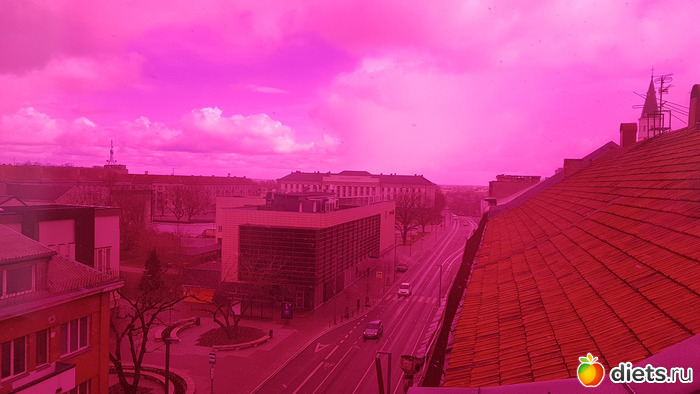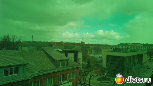 Нам предложили начать его осмотр с крышы. Оттуда открывается вид на выше упомянутую основную улицу. Так же предлагается сделать пару кадров через фильтры