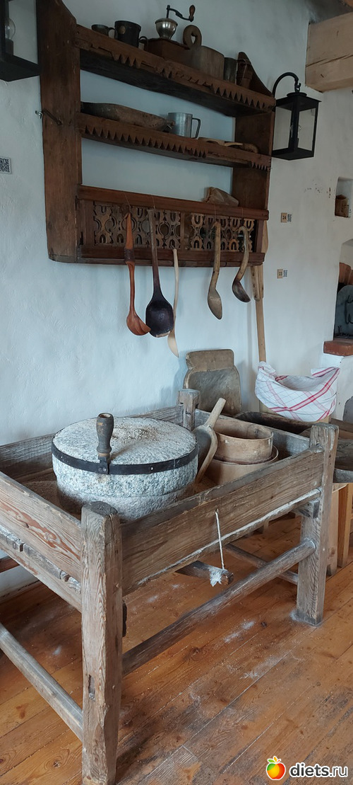 Вот тут нам дали вручную перемолоть какую-то крупу и просеить её через сито. А в лучшие докарантинные времена в рядом стоящей печи можно было быстренько и собственноручно испечь хлеб