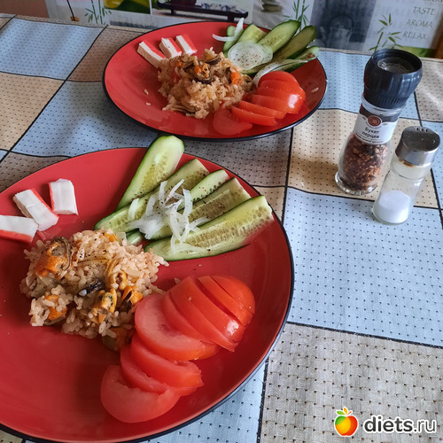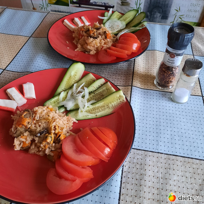 Вечером сготовила мужу вот такую прелесть. Мидии с рисом и овощами. Ресторан на дому. Ресторан, кстати, назову "Королева МарГо"