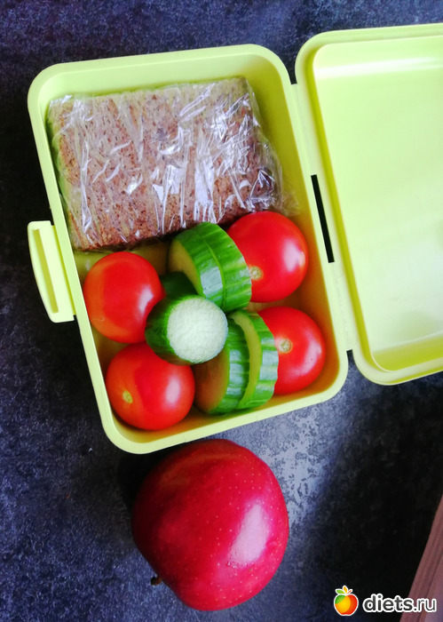 Перекус : цз хлеб с арахисовой пастой без сахара, помидорки и огурцы