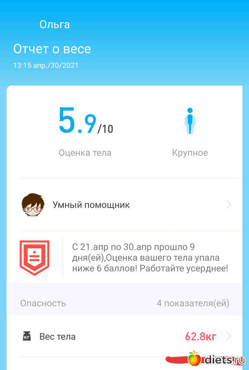 Вес за месяц -100гр , но объёмы ушли, ОТ-НА 2.5СМ, ОБ-НА 1.5СМ, ОГ-НА 4СМ, ОЖ-НА 3СМ.