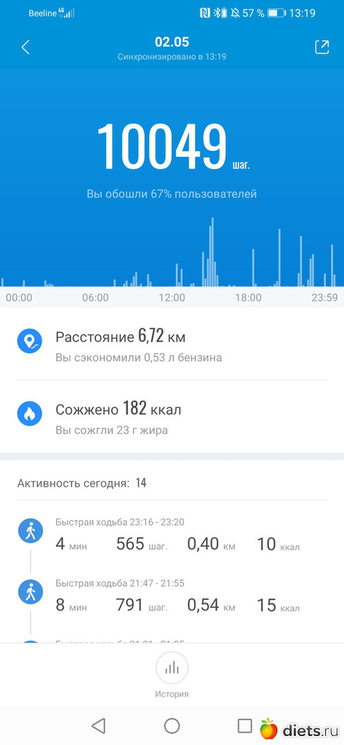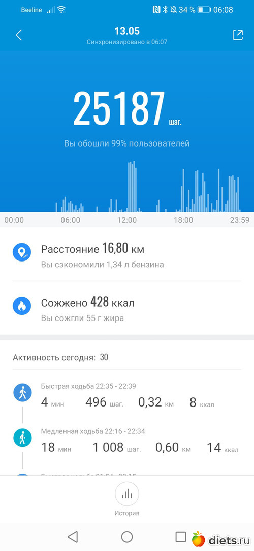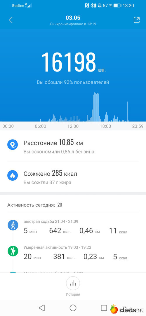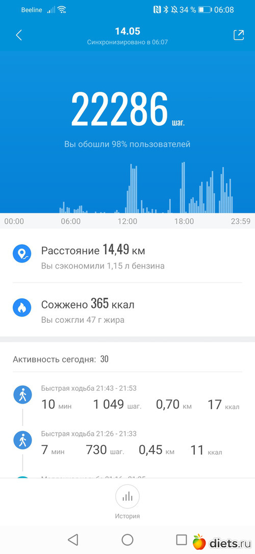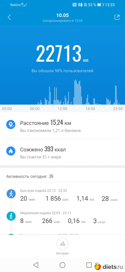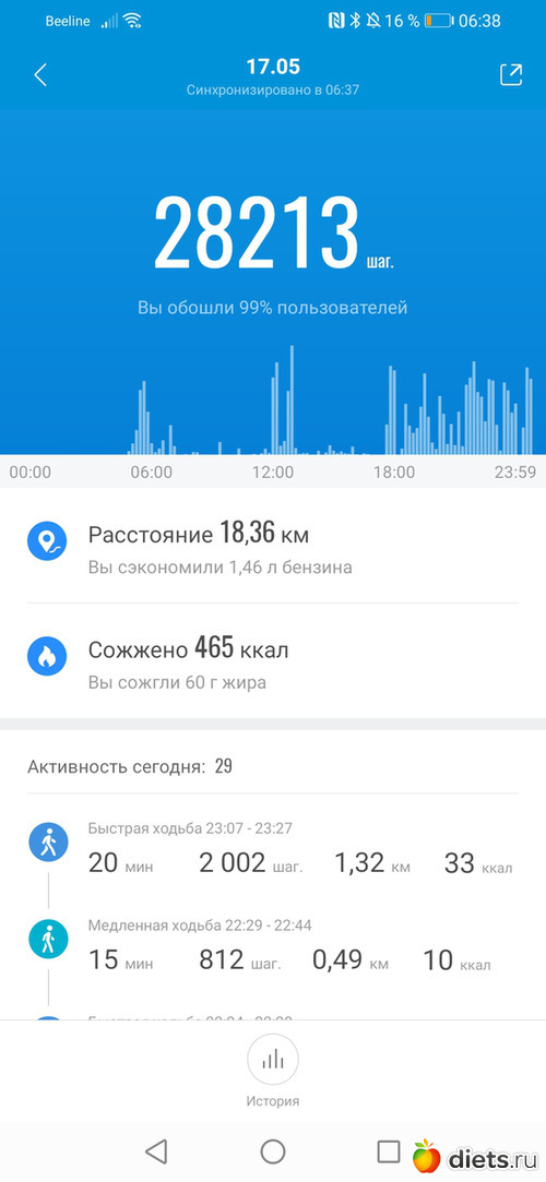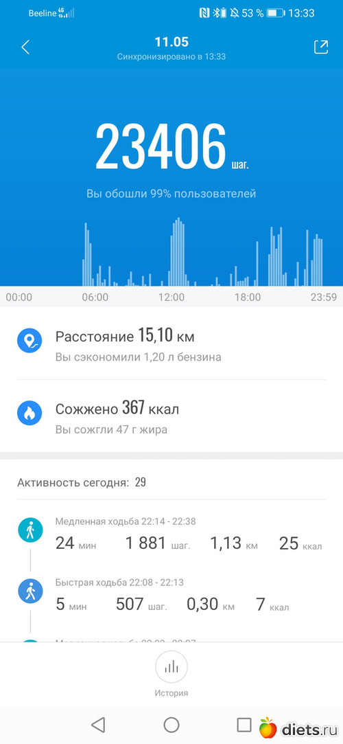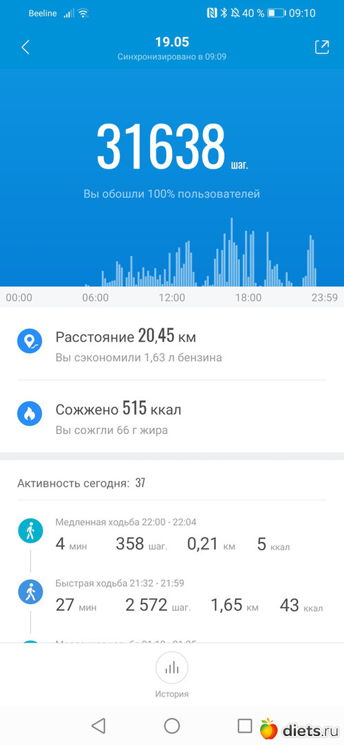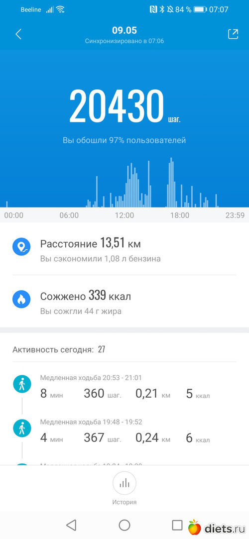 Хожу до работы, в обед и с работы до остановки и дома.