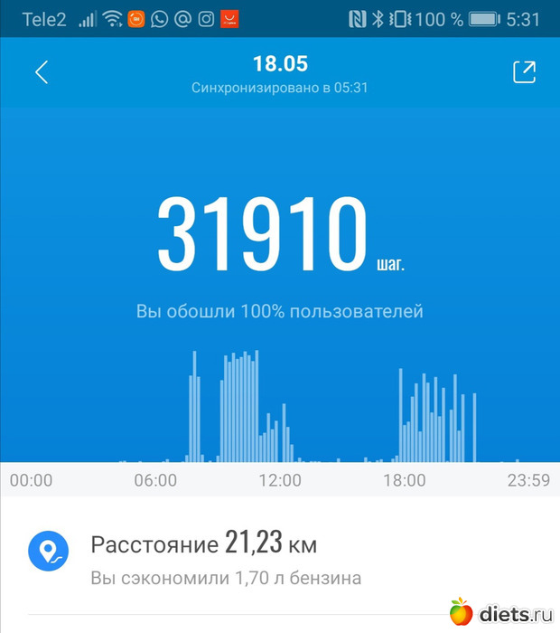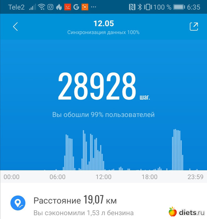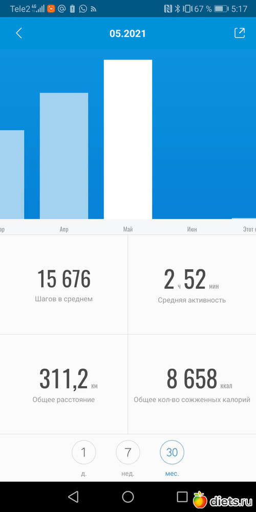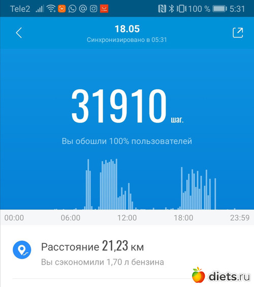 30000. И это с учетом того, что днем браслет был на зарядке и дома шаги почти не считались. Правда дома особо не ходила, почти все время за машинкой.