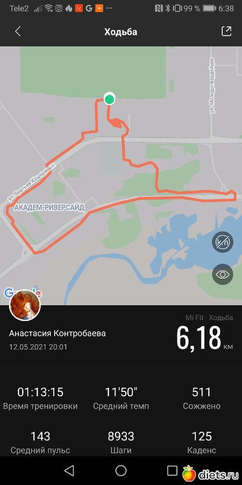 Сначала хотела сделать красивую восьмерку на карте, но потом решила зарулить в парк