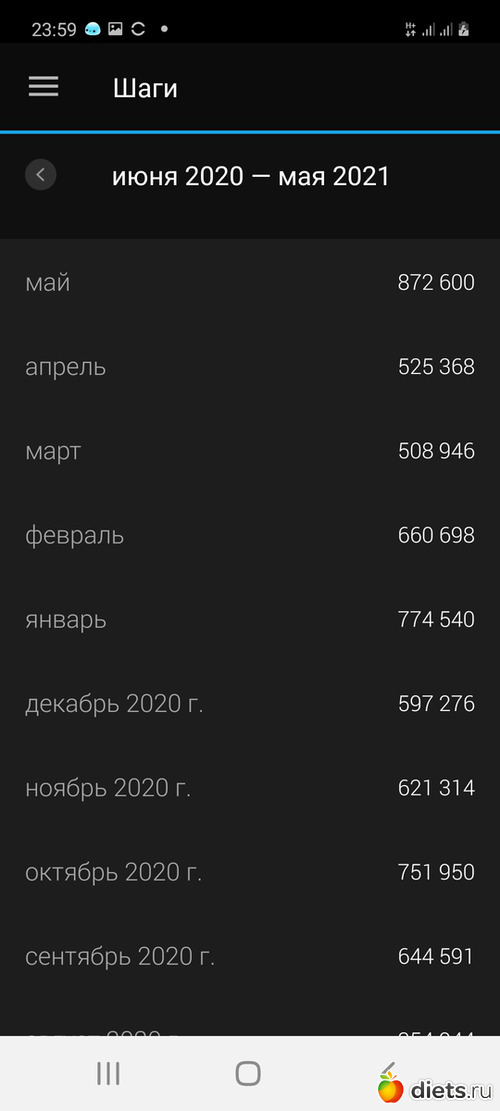 Итого за май 2021 получилось 872 600 шагов... Читать полностью