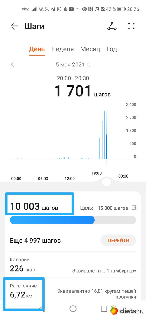 День 5. 10000 шагов. Цель в 15 тысяч не достигнута, без детей, как оказалось, ходить скучно. Да и особо негде. По тому маршруту, где мы шагаем с детьми, одной ходить жутковато. Но хоть 10000 отшагала, сейчас еще сделаю кардиотренировку.