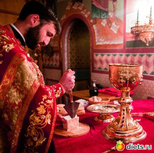 На ней не только приготавливаются будущее Тело Христово (Агнец — большая просфора) и будущая Кровь Христова для Таинства (вино), но и читается молитва за христиан — живых или умерших. За Матерь Божию, святых и нас, простых верующих, вынимаются частички из просфорок. Обратите внимание, когда вам дают маленькую просфорку после Причастия — из нее как будто «кто-то выковырял кусочек». Это священник вынимает частицы из просфор за каждое имя, написанное в записке «на проскомидию».