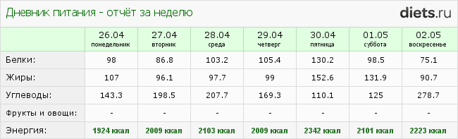 На прошлой неделе был вечный недожор, но в принципе не голодный, вес полз вверх. На этой пережор, и у меня минус.