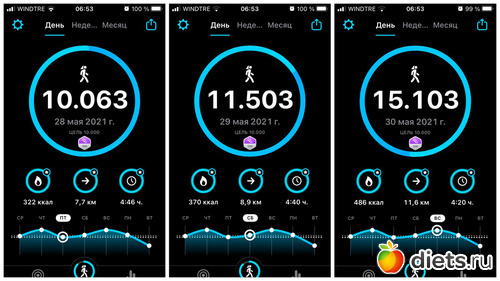 Плюс, конечно, прогулка с собакой, количество шагов сильно зависит от погоды, нашего с ним состояния и наличия времени. От 3 до 6 тысяч мы обычно ходим...
