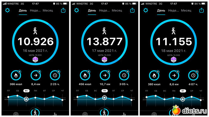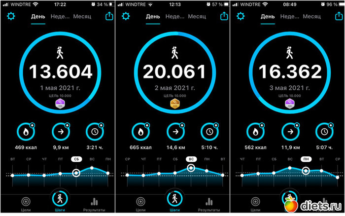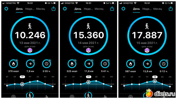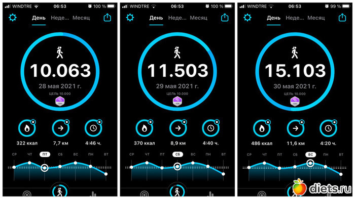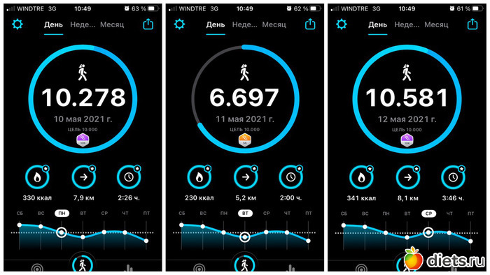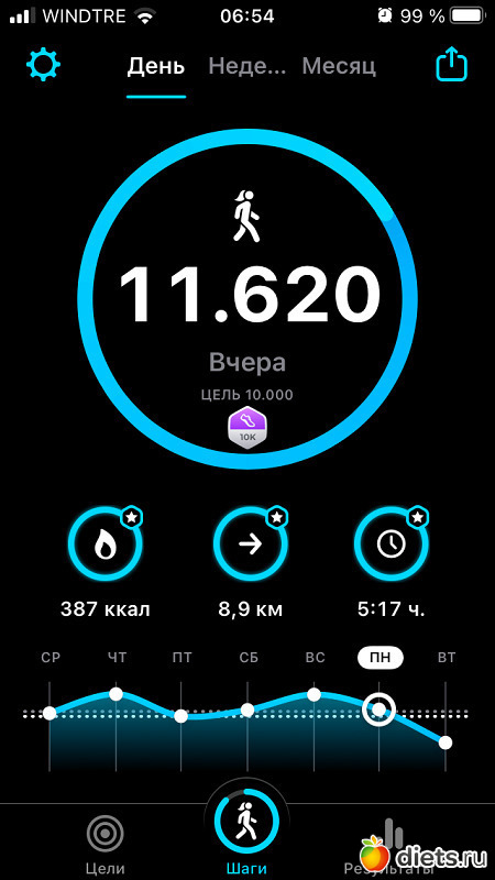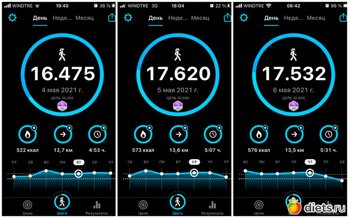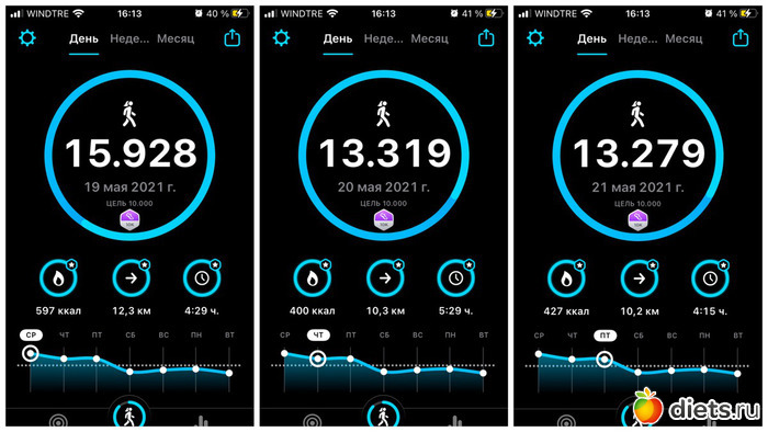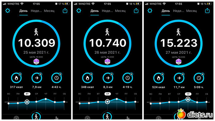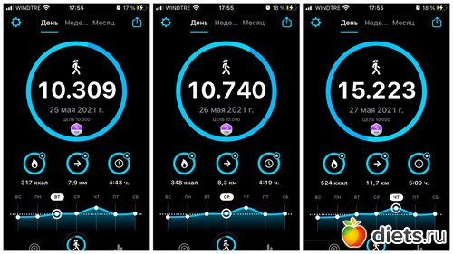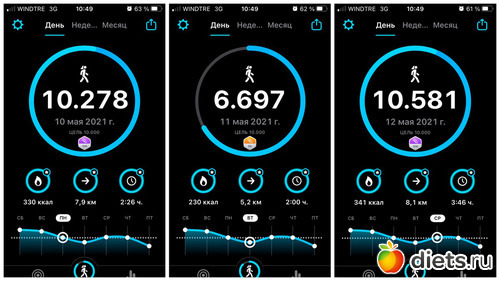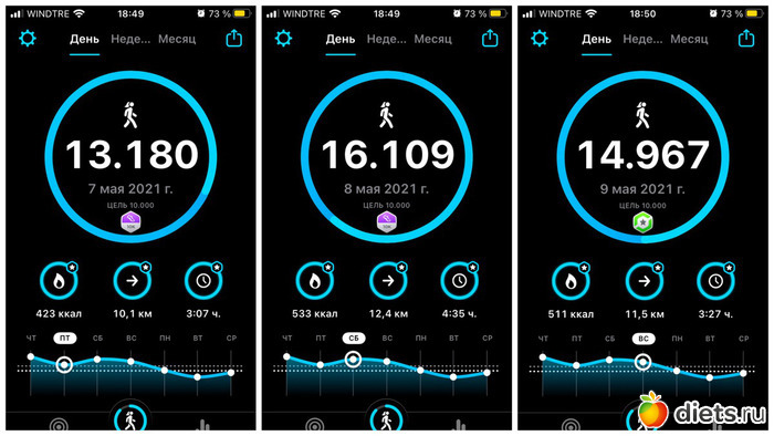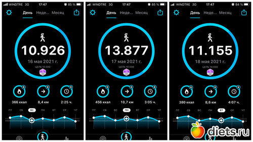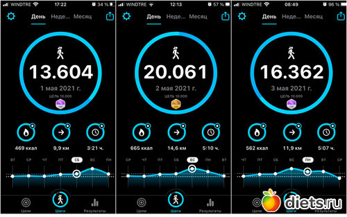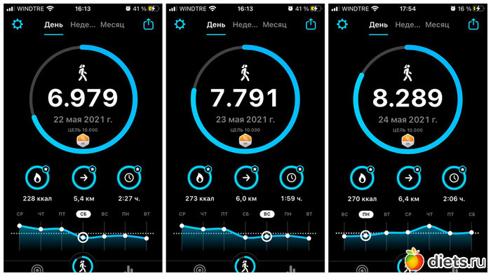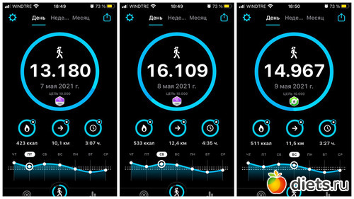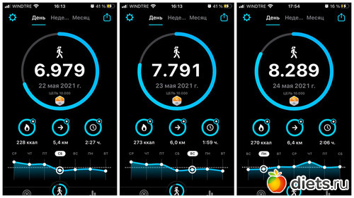 Плюс, конечно, прогулка с собакой, количество шагов сильно зависит от погоды, нашего с ним состояния и наличия времени. От 3 до 6 тысяч мы обычно ходим...