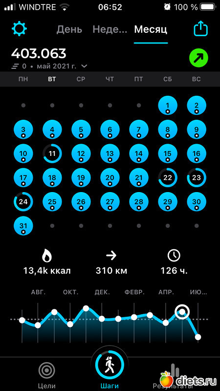 Ну и баланс за месяц... Всего 4 дня ленилась (условно), не выполнила норму в 10 тысяч