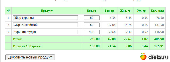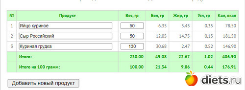 Калорийность продуктов