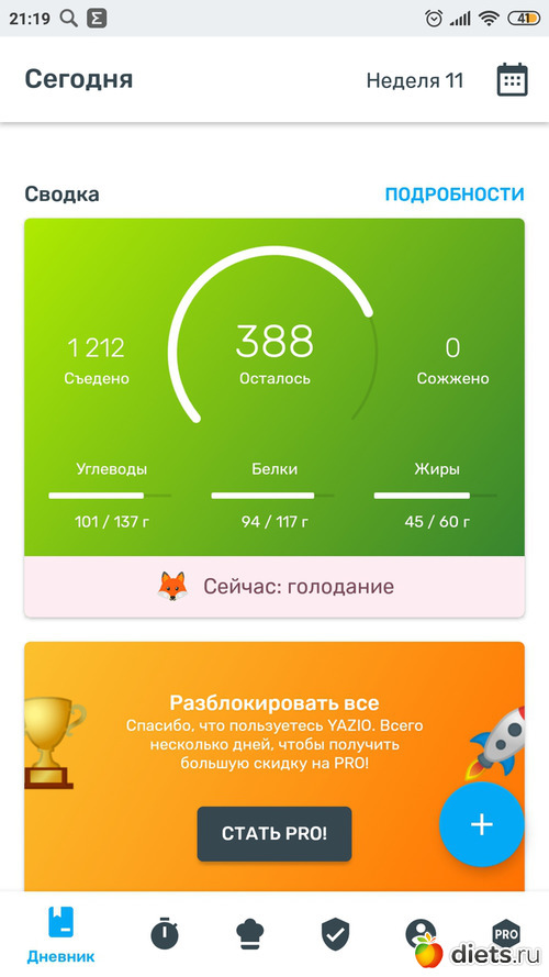 Сегодня вернулась к подсчету, от которого отдыхала неделю - так не проскакивает лишнего и виден баланс, чтоб не переедать угли. Еду фоткать не буду - полдня уйдёт на эту фотосессию и её выставку. Поэтому как прежде - дневник из приложения.