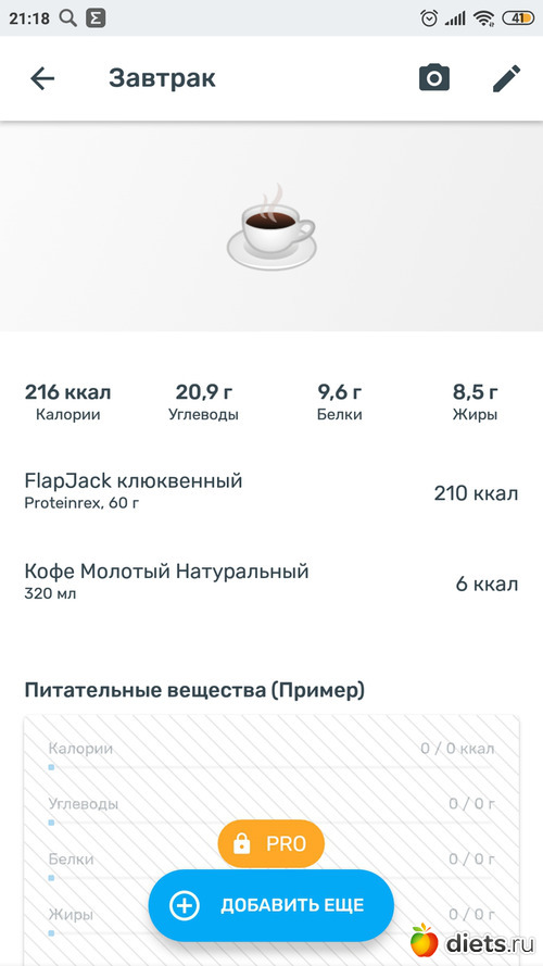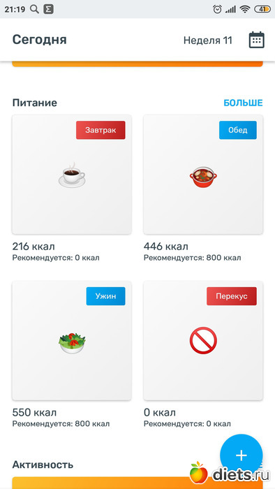 Сегодня вернулась к подсчету, от которого отдыхала неделю - так не проскакивает лишнего и виден баланс, чтоб не переедать угли. Еду фоткать не буду - полдня уйдёт на эту фотосессию и её выставку. Поэтому как прежде - дневник из приложения.