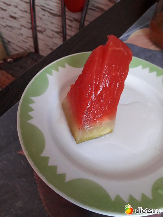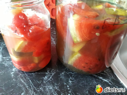 Я такого не ела. Надо будет на пробу готовый купить, если найду. Или попробовать закрыть самой. Вова мой равнодушен к арбузам, поэтому не часто покупаем - одна я по несколько дней ем один арбуз. А ведь можно сразу баночку одну хотя бы закатать.