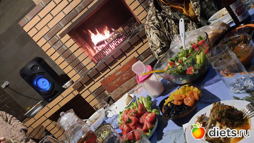 Мы привезли фруктов. Брат сказал, что будет складчина))) Вот ведь жмот))) Такой вот нонсенс-гостеприимный жмот))) Кому там эти фрукты уже нужны были?! Я и не попробовала всего. Сидели на улице, на террасе, пошёл дождь, всё заблагоухало.