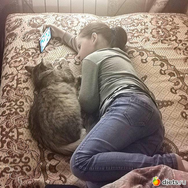 Котики оба лапочки, лежат там рядом, и кошачий и человечий)))