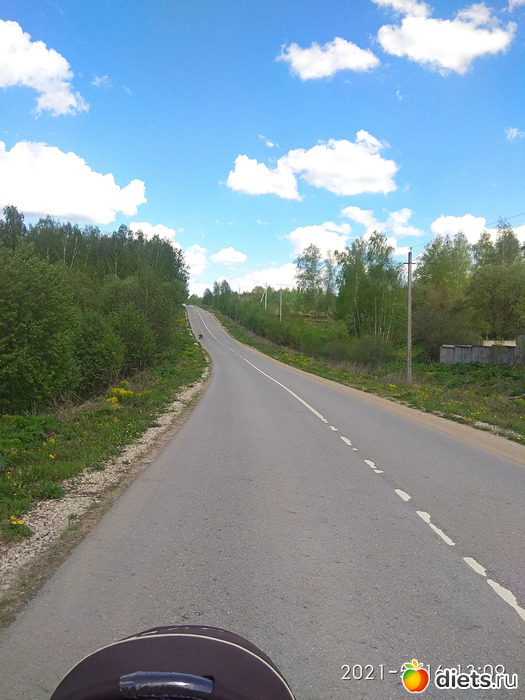 Родители у меня живут отдельно, но недалеко друг от друга, в соседних поселках - как я сегодня засекла, от ворот и до ворот 3,5км. Дочь изъявила желание доехать до дедушки на велосипеде. Я, соответственно, следом с коляской. Расстояние небольшое, но с подъёмами и спусками.