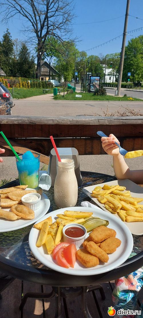 Думали возьмем на вынос, но к нашей радости за время карантина забегаловка присторила терраску как раз в связи с тем, что сейчас у нас только летние террасы открыты, и на ней даже нашлось свободное место
