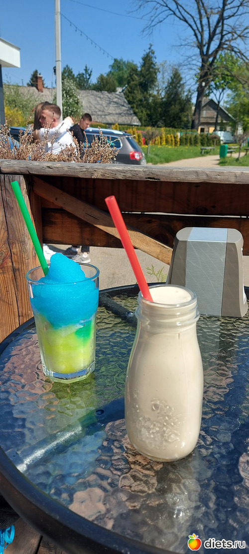День был теплый, +22, заказали еще шербет и фраппе. Фраппе такого плана никогда не пила, обычно оно готовится из блендерированного льда и кофе, а тут густая белая жидкость, то ли сливки, то ли что, безумно вкусно, наверное и безумно калорийно