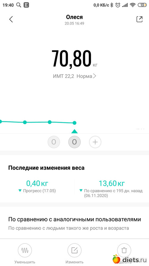 Неудобно стало высчитывать теперь на сколько похудела, потолстела с этими 50гр. Но удобно теперь то, что запоминать не надо, все в телефоне теперь хранится. Весы упорно говорят, что мне надо кушать больше белков.
