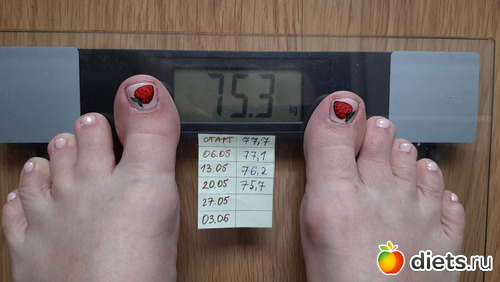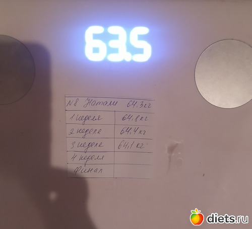Есть отвес, хотя с выходных не считала калории (но не налегала на жирное и мучное) и не занималась, т.к. простыла. С этих выходных планирую вернуться к постоянным занятиям.