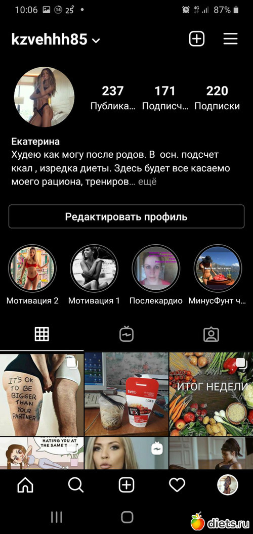 У меня есть дневник похудения в инстаграм, и я даже его веду)))с января, и худею, и даже около 7 кило сбросила, но уже лето, а результат не достигнут, точнее куча работы еще, по весу, то максимум 3 кило, ну 5, нужно снять. Верх то у меня уже приличный, а вот низ отстаёт, целлюлит нехилый еще. За скоростью сильно не боюсь, уяснила уже что похудение быстрым не бывает, мне нужно именно от жира избавиться, вода и запахи пусть останутся при мне