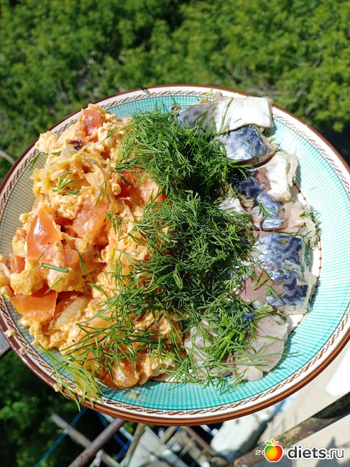 Вот один из завтраков. Это вчерашний. Опять сама засолила скумбрию. Буду потихоньку, на завтраки, ее есть. Вкусно.