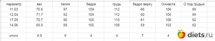 Естественно боялась вставать на весы после всего этого непотребства. Но то ли физического труда было прилично, то ли я научилась интуитивному питанию, либо получилось у меня ускорить метаболизм, но у меня таки не плюс, а минус. При чем не только в весе но и некоторых объемах
