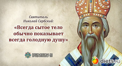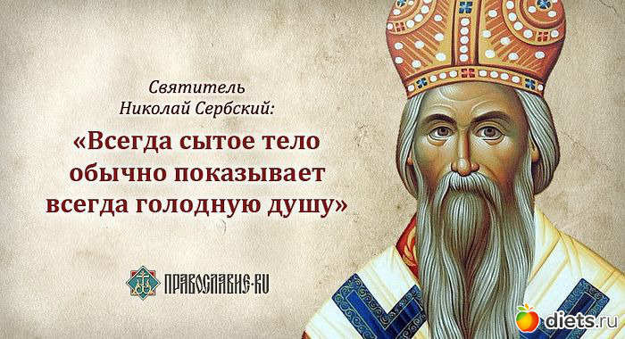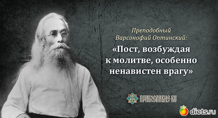 «Пост есть пища для души, и как телесная пища утучняет тело, так и пост укрепляет душу, сообщает ей легкий полет, делает ее способной подниматься на высоту и помышлять о горнем и поставляет выше удовольствий и приятностей настоящей жизни»