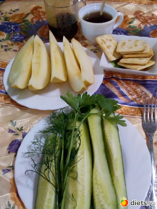 Сына завтра идет в поход с ночевкой... Он же ж у меня училище бросил (хотя... вдруг к сентябрю одумается). Так я его в казачий конвой для подростков послала. Со страшным, надо сказать скандалом и криками "это мне не надо, сама иди в свой конвой". А как сходил, так в полный восторг пришел. И вот уже второй раз за неделю идет с казачатами в военно-полевой выход! А я и рада: деть без дела не болтается))) И по этому случАю мне мама продуктов подкинула, дабы казака в поход собрать. Параллельно вынесла весь мозг, конечно, но теперь у меня не только макароны с сыром. А вот еще на ужин есть и зелень, всякие овощи (правда, на ужин я взяла только огурцы), пять скибок маленькой дыньки и совсем постные печенюшки "мука-вода и соль" (это у меня длинные углеводы на ночь, ибо гармонизма моя имеет гадкую привычку впадать в гипогликемии среди ночи). Плюс чашка цикория - полезнейшего напитка, который на вкус, как кофе, только не возбуждает, и вообще по полезности не хуже цитрамону