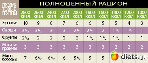 В зависимости от ежедневного потребления калорий будет меняться и число порций: