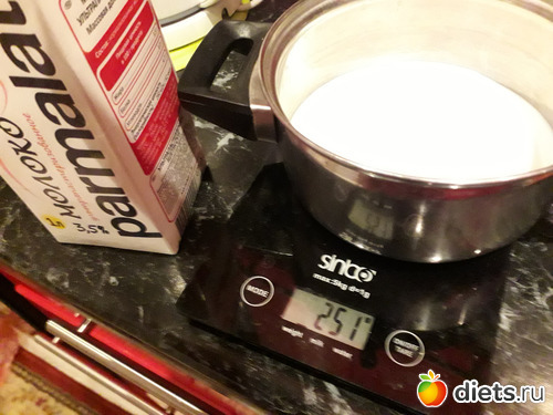 манная крупа - 50-60 г(все зависит от сорта манки-у меня с клетчаткой-она более крупинчатая и мне потребовалось всего 50г.. Возможно потребуется больще-должна получиться относительно густая манная каша, которая при остывании еще немного загустеет!)