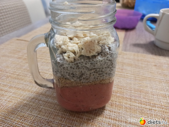 Вчера как раз был чиа-пудинг на кокосовом молоке. Мне, честно говоря, вкуса в нем не хватило. Наверное, нужны фрукты