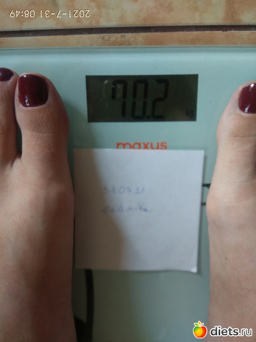 Вес позавчера 70,6, сегодня минус 0,4. Видно плохо, там 70,2