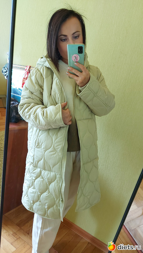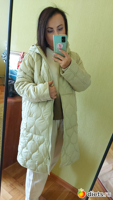 Итак, самой крупной покупкой было это стеганое пальто Очень понравился нежно-зеленый оттенок