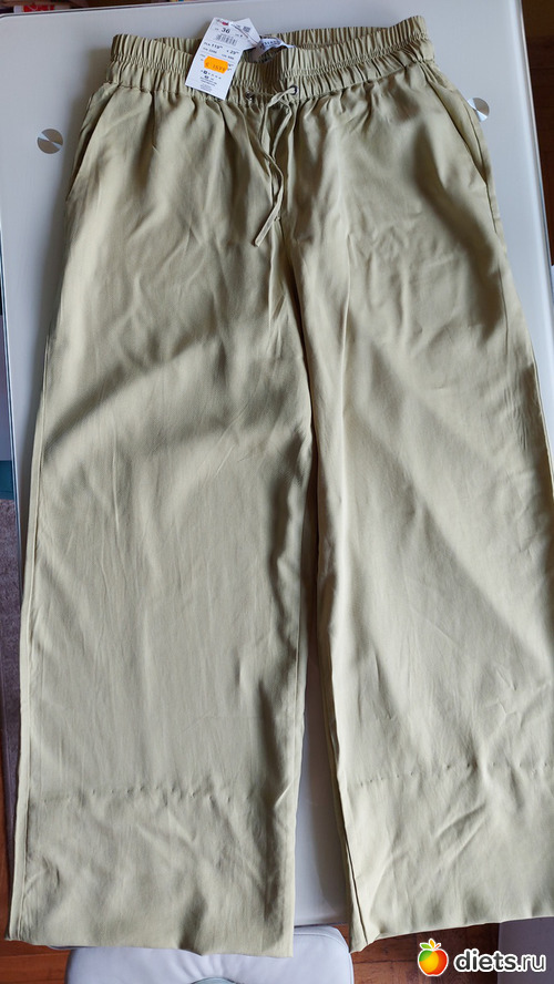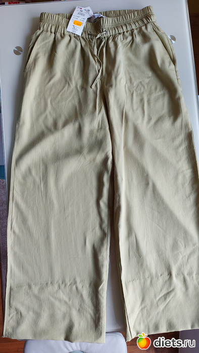 В итоге все-таки купила одни, подкорачивала на 20 см. Ткань вискоза, очень понравился яблочный цвет. В нОске приятные, в жару хорошо