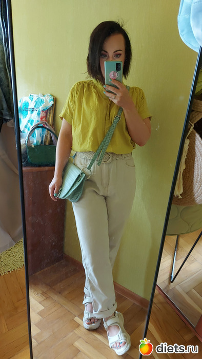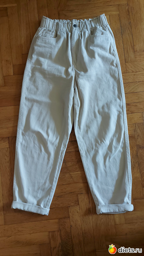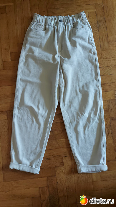 Молочные джинсы, модель бэгги. Это уже 5я или 6я пара в этой моделе, никак не могу отойти от кроя бэгги, кажется, что все остальное сильно полнит. Но обещала сама себе, что это уже точно последняя
